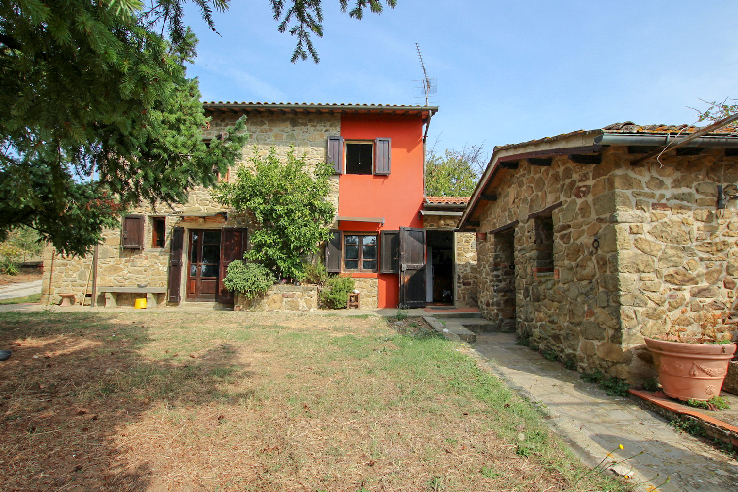 A beautiful stone farmhouse situated on a hill in Uzzano, easily accessible via a paved road. The property is full of character and in good condition, surrounded by a large garden and a plot of 17,000 m² with approximately 300 olive trees.